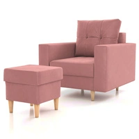Fotel z podnóżkiem Vaso łososiowy wygodny fotel do salonu w stylu skandynawskim miękkie siedzisko wysokie drewniane nogi