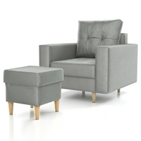 Fotel z podnóżkiem Vaso jasny szary wygodny fotel do salonu w stylu skandynawskim miękkie siedzisko wysokie drewniane nogi