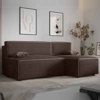 Narożnik z funkcją spania Brandon brązowy prawostronny trójwymiarowa tkanina o wyrazistych prążkach pojemnik na pościel