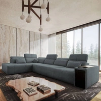 Narożnik z funkcją spania Tesalia V niebieski prawostronny komfortowy narożnik z szufladą oraz funkcją przesuwanego oparcia