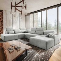 Narożnik z funkcją spania Savona szary popiel lewostronny wygodny i elegancki narożnik z regulowanymi zagłówkami dekoracyjne przeszycia