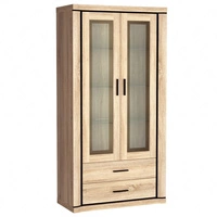 Witryna Dallas 97 cm dąb sonoma / czarny stylowa witryna z szufladami do salonu elementy z bezpiecznego szkła stylowe czarne uchwyty
