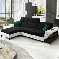 Narożnik z funkcją spania Bresso czarny / biały lewostronny stylowy narożnik z praktyczną półką w kolorze czarnym regulowane zagłówki