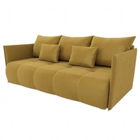 Kanapa rozkładana Selva musztardowa funkcjonalna sofa do salonu z pojemnikiem na pościel wykonana z komfortowej tkaniny typu plusz
