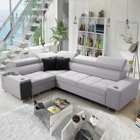 Narożnik z funkcją spania Cetara II beżowy lewostronny stylowy design przesuwane oparcia regulowane zagłówki i pojemnik na pościel