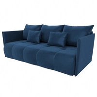 Kanapa rozkładana Selva granatowa funkcjonalna sofa do salonu z pojemnikiem na pościel wykonana z komfortowej tkaniny typu plusz