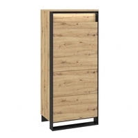 Komoda wysoka Quant 60 cm dąb artisan / czarny nowoczesny design komoda z oświetleniem LED system otwierania drzwi push to open