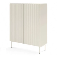 Komoda wysoka Muti 99 cm beżowa designerska komoda z efektownym ryflowaniem na frontach i korpusie system otwierania push to open