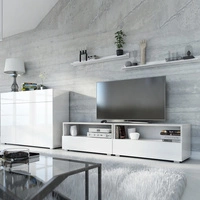Meblościanka Nestorio biała / biały połysk stylowy design meblościanki wpisujący się w każde wnętrze szafka RTV z możliwością powieszenia