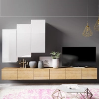 Zestaw mebli Vellore beżowy elegancka meblościanka o minimalistycznym designie subtelnie obniżone blaty stanowią dekorację mebli