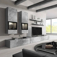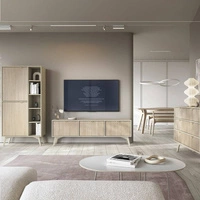 Meblościanka Kioto I eukaliptus stylowy design mebli do salonu eleganckie meble wsparte na metalowej czarnej podstawie subtelne uchwyty