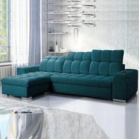 Narożnik z funkcją spania Luigi turkusowy lewostronny narożnik z dwoma pojemnikami na pościel tkanina o ciekawej strukturze