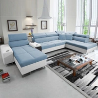 Narożnik z funkcją spania Dafni V błękitno biały lewostronny velvet wygodny i komfortowy narożnik z regulowanymi zagłówkami