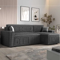 Narożnik z funkcją spania Brandon Bis szary prawostronny trójwymiarowa tkanina o wyrazistych prążkach pojemnik na pościel
