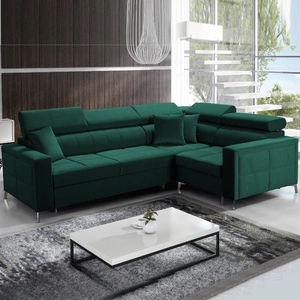 Narożnik z funkcją spania Nausa II butelkowa zieleń prawostronny velvet dekoracyjne przeszycia na siedzisku narożnik z pojemnikiem na pościel
