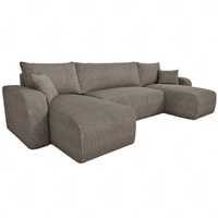 Narożnik z funkcją spania Fiesta U jasny brąz stylowy narożnik o ciekawym kształcie wytrzymała sztruksowa tkanina pojemnik na pościel