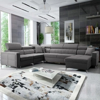 Narożnik z funkcją spania Kelly Sleek IX szary prawostronny elegancki narożnik z wygodnymi podłokietnikami i regulowanymi zagłówkami