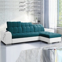Narożnik z funkcją spania Luigi II niebieski / biały lewostronny komfort podczas codziennego wypoczynku narożnik z pojemnikiem na pościel