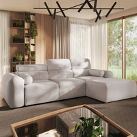Narożnik z funkcją spania Cantare kość słoniowa prawostronny funkcjonalny i komfortowy narożnik nowoczesny design pluszowa tkanina