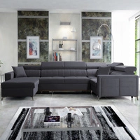 Narożnik z funkcją spania Kelly Sleek VI grafitowy prawostronny nowoczesny design narożnik do salonu z regulowanymi zagłówkami