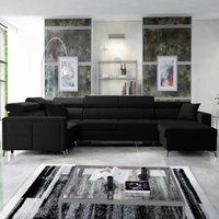 Narożnik z funkcją spania Luigi VII czarny prawostronny komfortowy narożnik rozkładany utrzymany w nowoczesnej formie