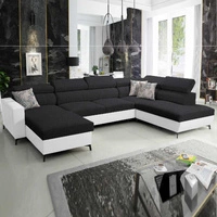 Narożnik z funkcją spania Pasco U czarny klasyczny design gustowna bryła z gwarancją funkcjonalności i komfortu miękka tkanina