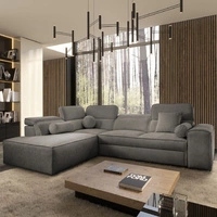 Narożnik z funkcją spania Tesalia XII szary popiel lewostronny nowoczesny design komfortowe przesuwane oparcie szuflada w boczku mebla