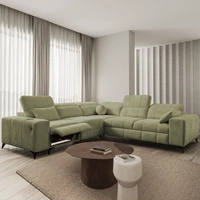 Narożnik z funkcją spania Penejos III Lux oliwkowy lewostronny komfortowy narożnik do salonu z wysuwanym podnóżkiem pojemnik na pościel