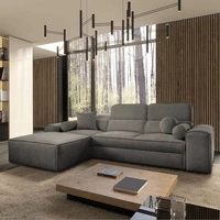 Narożnik z funkcją spania Tesalia szary lewostronny nowoczesny design komfortowe przesuwane oparcie szuflada w boczku mebla