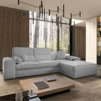 Narożnik z funkcją spania Tesalia IX szary prawostronny nowoczesny design komfortowe przesuwane oparcie szuflada w boczku mebla