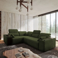 Narożnik z funkcją spania Tesalia II Lux zielony lewostronny wygodny narożnik z przesuwanym oparciem oraz wysuwanym podnóżkiem