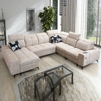 Narożnik z funkcją spania Viano VII kremowy lewostronny modny i stylowy narożnik z regulowanymi zagłówkami ozdobne poduszki