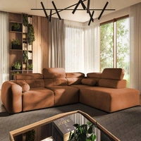 Narożnik z funkcją spania Cantare II ceglasty lewostronny komfortowy narożnik do salonu o stylowym charakterze miękka tkanina