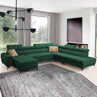 Narożnik z funkcją spania Viano III zielony lewostronny stylowy narożnik z pojemnikami na pościel doskonały do nowoczesnych wnętrz