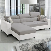 Narożnik z funkcją spania Provo III szary / biały prawostronny narożnik z pojemnikiem na pościel i regulowanymi zagłówkami