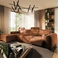 Narożnik z funkcją spania Cantare VIII Lux łososiowy lewostronny designerski narożnik z elektrycznie podnoszonym podnóżkiem