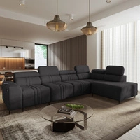 Narożnik z funkcją spania Castel VII szary popiel prawostronny stylowy narożnik z pojemnikiem na pościel i regulowanymi zagłówkami