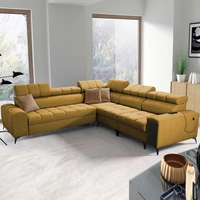 Narożnik z funkcją spania Bolmso III musztardowy prawostronny narożnik z pojemnikami na pościel szuflada z pełnym wysuwem w boczku