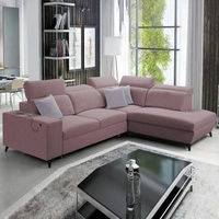 Narożnik z funkcją spania Kelly Sleek VI lawendowy róż prawostronny nowoczesny design narożnik do salonu z regulowanymi zagłówkami