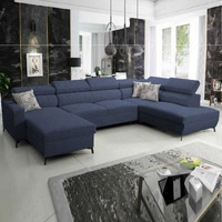 Narożnik z funkcją spania Rava VII granatowy lewostronny praktyczny i nowoczesny narożnik do salonu z regulowanymi zagłówkami