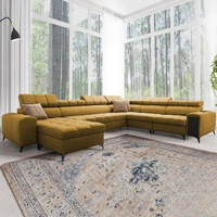 Narożnik z funkcją spania Alcamo III miodowy prawostronny funkcjonalny i stylowy narożnik z szufladą w boczku dwa pojemniki na pościel