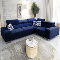 Narożnik z funkcją spania Hampton II granatowy prawostronny stylowy narożnik rozkładany miękka tkanina obiciowa typu velvet