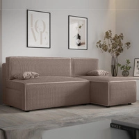 Narożnik z funkcją spania Belvi II ciemny beżowy prawostronny elegancki i ergonomiczny narożnik do salonu praktyczny schowek w boczku