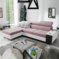 Narożnik z funkcją spania Castel II różowy prawostronny komfortowy narożnik z regulowanymi zagłówkami pojemnik na pościel