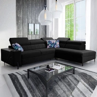 Narożnik z funkcją spania Belvi II czarny lewostronny elegancki i ergonomiczny narożnik do salonu praktyczny schowek w boczku