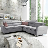 Narożnik z funkcją spania Penejos XII szary prawostronny stylowy narożnik z pojemnikami na pościel komfortowe regulowane zagłówki