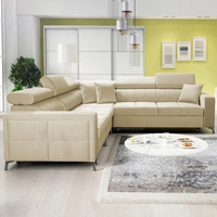 Narożnik z funkcją spania Gentle beżowy prawostronny stylowy design narożnik rozkładany charakteryzujący się obłym kształtem