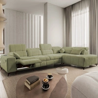 Narożnik z funkcją spania Penejos VII zielony prawostronny stylowy narożnik z pojemnikiem na pościel wygodne regulowane zagłówki