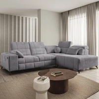 Narożnik z funkcją spania Penejos IX szary prawostronny stylowy narożnik z pojemnikami na pościel wygodne regulowane zagłówki