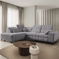Narożnik z funkcją spania Penejos IX szary lewostronny stylowy narożnik z pojemnikami na pościel wygodne regulowane zagłówki